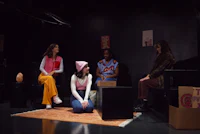 This show was my first official directing credit! I was able to experience a full process this time around and develop my own unique approach to the work. I believe that the key to our success with this project was the joy we found with each other in the rehearsal room. Nearly every rehearsal erupted into fits of laughter that filled the room and fueled our collective creativity. I can recall a particularly silly rehearsal that ended with Victoria in tears of laughter. There was so much joy in our room, from giggling at the notes that Yeshi took in their prop journal to pushing through laughter to try and continue the scene (to varying degrees of success). I learned so much about myself and what I value as a creative person. We just loved each other’s company and had an absolute blast making this together! And what a joyful thing to experience! I am so proud of the community we were able to form and it is my goal to continue that work, of seeking joy and fun in the rehearsal room.